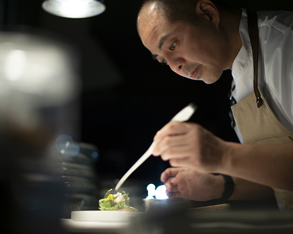 大阪のフレンチレストラン「2H」にて修行を積み、のちにミシュランで一ツ星を取るフランス、パリの「Itineraires」にて研修を受ける。